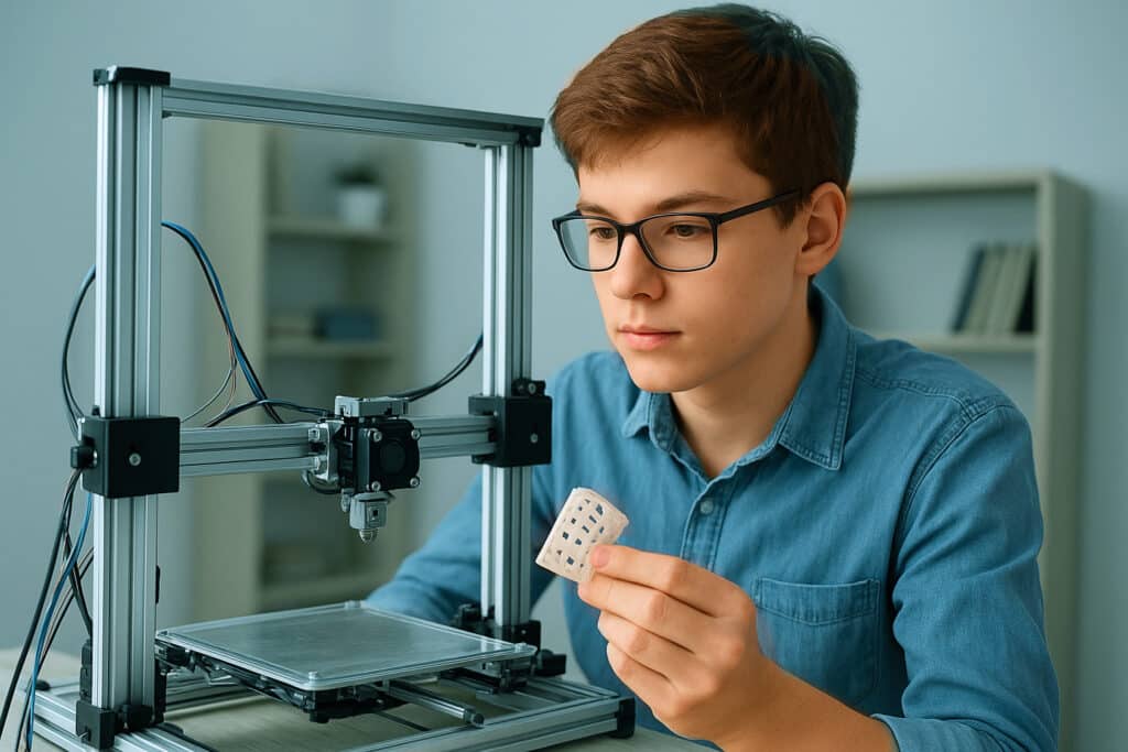 Los alumnos configuran Cura, reconocen las partes de una impresora, nivelan la cama y manipulan archivos STL. Diseñan figuras simples en Tinkercad, las laminan y preparan su primer llavero personalizado para impresión.